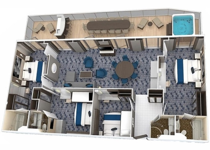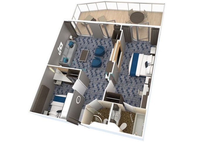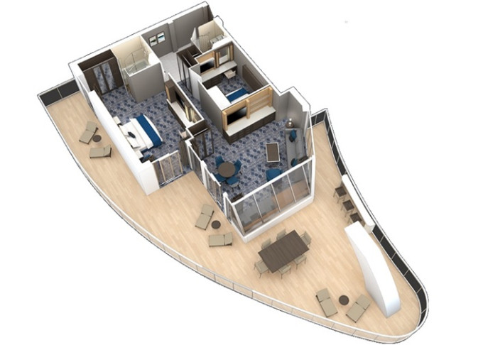 | OS - Owner’s Suite s balkónom 51,5 m² + balkón 22 m². Max 4 osoby. Výhody Royal Suite Sky Class. | 9 975 € 3 325 € za osobu | ||