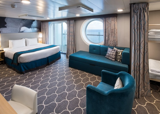 | J4 - Junior Suite s balkónom 26,5 m² + balkón 7,5 m². Max 5 osôb. Výhody Royal Suite Sea Class. | 4 716 € 4 716 € za osobu | ||